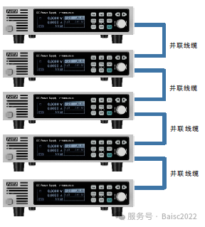 FTP1200电源最多支持5台电源的主从并联使用,大大扩展了电源的应用输出范围。并机功能除了使电源之间自动均载,保持输出值的一致,还保证了输出斜率曲线或者波形的一致。处于并联状态的主机,电源屏幕显示的是总电压、电流和功率值。每路从机自主均流,自动求和。