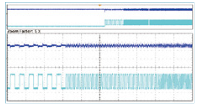 63200A动态频率扫描模式(如下图所示),可线性改变负载电流的频率,频率最高可达50kHz,此模式可测出待测物在最坏情况下的最大/最小电压峰值。此动态频率扫描功能的采样率为500kHz。动态变频扫描负载模式可模拟各种不同负载的情况,符合大部分使用者的需求。而63200A的远端负载感测器及控制线路,可确保不同频率下动态负载操作的波形失真率最小化。