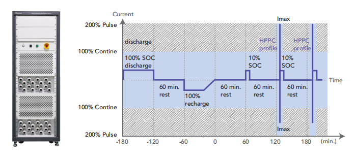 车用电池基于国际测试标准进行功率能力测试与行驶模拟来评价电池特性,高倍率电流或功率的测试参数是基于电池操作条件(如BEV、PHEV与HEV)而制定,其输出时间皆在30S以内,为其购置满功率设备成为无形的冗余支出,Chroma 17010H不仅提供200%的脉冲电流与功率输出能力,更能有效降低设备成本与设备空间。
