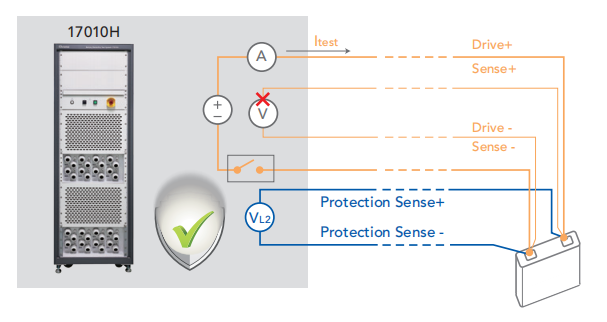 大型电池芯在事故时引发的灾害难以预期,为强化实验安全性,在每个信道独立设置了辅助的电压保护测量回路,独立记忆保护参数并自主运作,异常时立即强制关闭输出回路来保障实验安全。