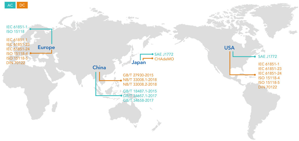 • 可支持全球AC&DC相关充电标准: